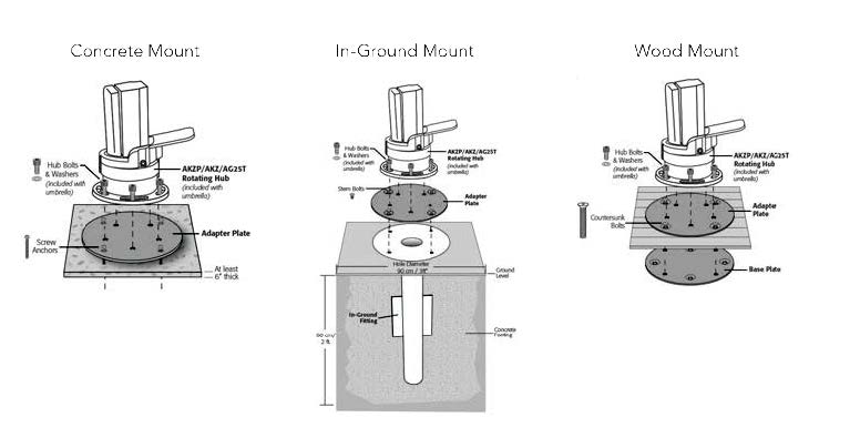 • Choose the type of base you need: Concrete Mount, In-Ground Mount, Wood Mount