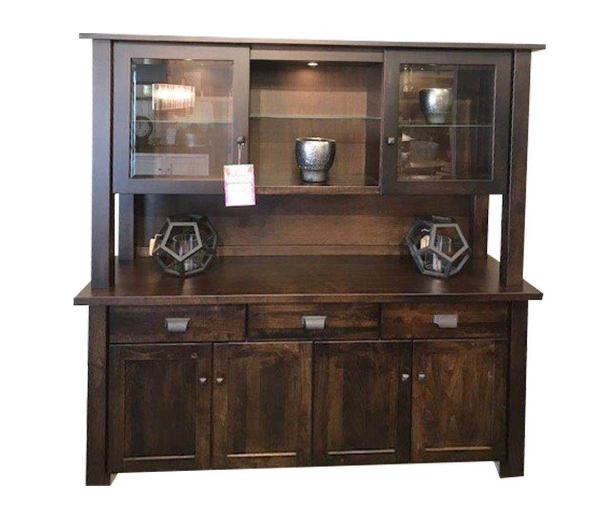 • Three adjustable glass shelf in the hutch top